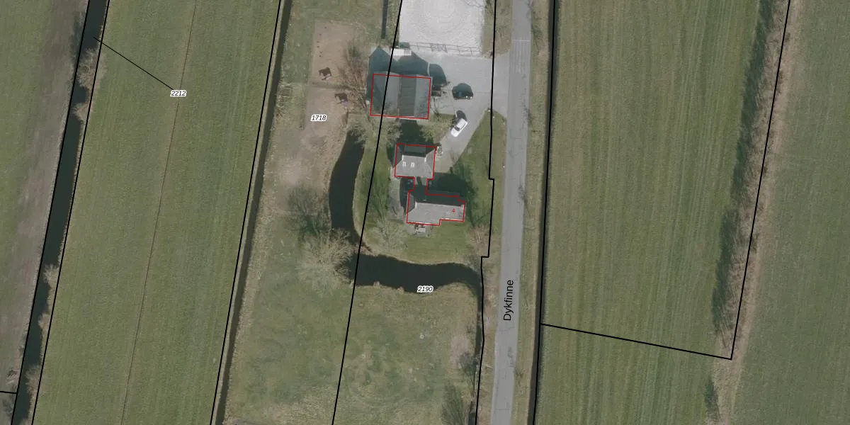 Dykfinne 4 is gelegen op kadastraal perceel ODG00E2190. Deze kadastrale aanduiding is uniek en wordt gebruikt door het Kadaster om eigendomsrechten en andere zakelijke rechten vast te leggen. Het perceel maakt onderdeel uit van de kadastrale gemeente Oudega.