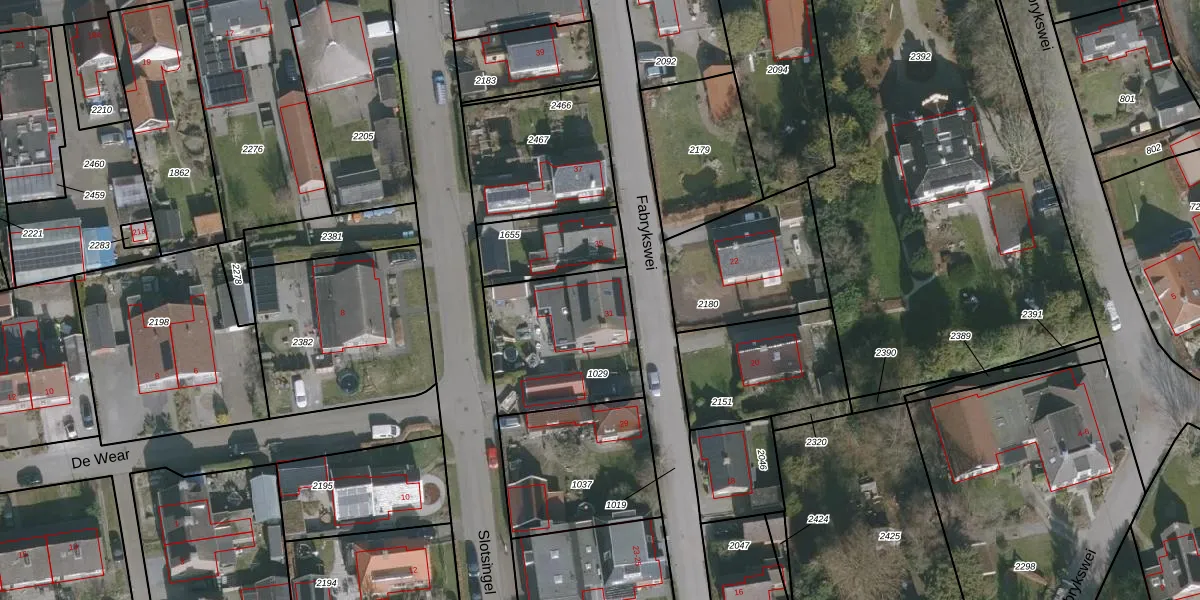 Het perceel waarop Fabrykswei 31 staat heeft een oppervlakte van 530 m². Dit is een groot perceel. De perceeloppervlakte wordt geregistreerd door het Kadaster. Gedetailleerde informatie over de maten van dit perceel kunt u vinden in het rapport Kadastrale kaart met maatvoering van Fabrykswei 31.