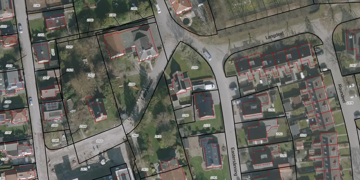 Het perceel waarop Fabrykswei 9 staat heeft een oppervlakte van 685 m². Dit is een groot perceel. De perceeloppervlakte wordt geregistreerd door het Kadaster. Gedetailleerde informatie over de maten van dit perceel kunt u vinden in het rapport Kadastrale kaart met maatvoering van Fabrykswei 9.