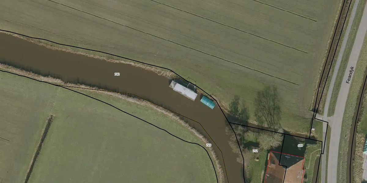 Het perceel waarop het adres ligt is HEE04-G-742. De afkorting 'HEE04' staat voor kadastrale gemeente Heeg. Het perceel is 1,0 ha groot. Dat is kleiner dan de gemiddelde perceeloppervlakte in Heeg, dat op 1,1 ha ligt. Het grootste perceel in de kadastrale gemeente is 3,52 km². Het kleinste perceel heeft een oppervlakte van 0 m². Op het perceel zijn 5 adressen aanwezig. In de Basisregistratie Kadaster (BRK) werden de grenzen van het perceel geregistreerd op 07-10-2025.