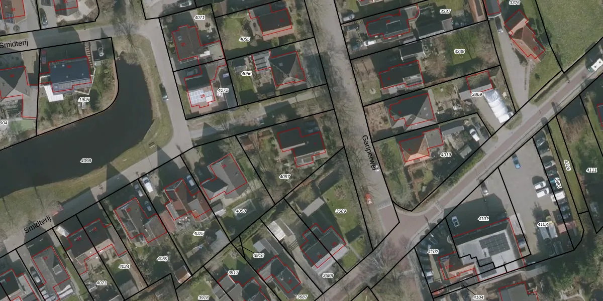 Gebruik de zoekbalk of klik op een perceel voor informatie over de adressen binnen dit perceel.