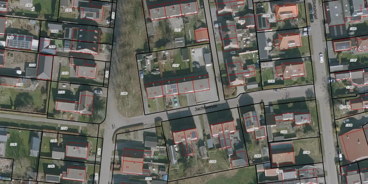 Jachtweide 12 is gelegen op kadastraal perceel ODG00A2197. Deze kadastrale aanduiding is uniek en wordt gebruikt door het Kadaster om eigendomsrechten en andere zakelijke rechten vast te leggen. Het perceel maakt onderdeel uit van de kadastrale gemeente Oudega.