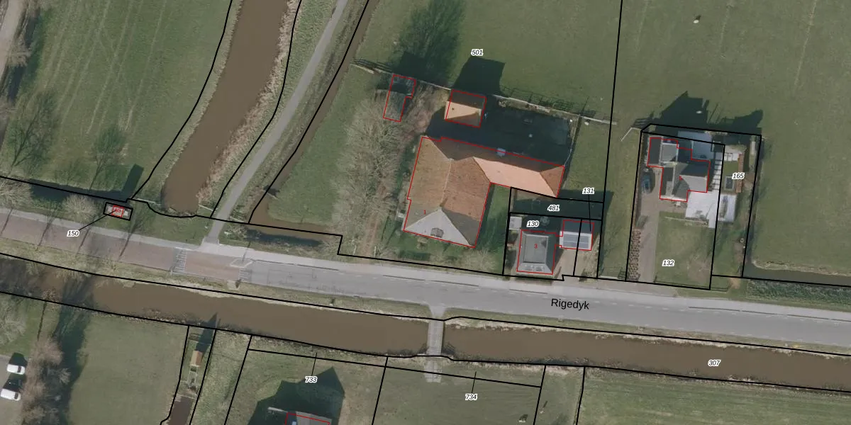 Rigedyk 1 is gelegen op kadastraal perceel HEE04J501. Deze kadastrale aanduiding is uniek en wordt gebruikt door het Kadaster om eigendomsrechten en andere zakelijke rechten vast te leggen. Het perceel maakt onderdeel uit van de kadastrale gemeente Heeg.
