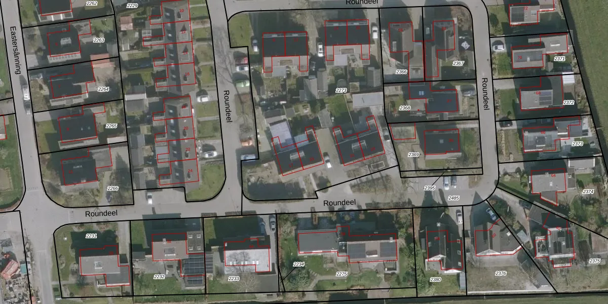 Het perceel waarop Roundeel 19 staat heeft een oppervlakte van 2710 m². Dit is een zeer groot perceel. De perceeloppervlakte wordt geregistreerd door het Kadaster. Gedetailleerde informatie over de maten van dit perceel kunt u vinden in het rapport Kadastrale kaart met maatvoering van Roundeel 19.