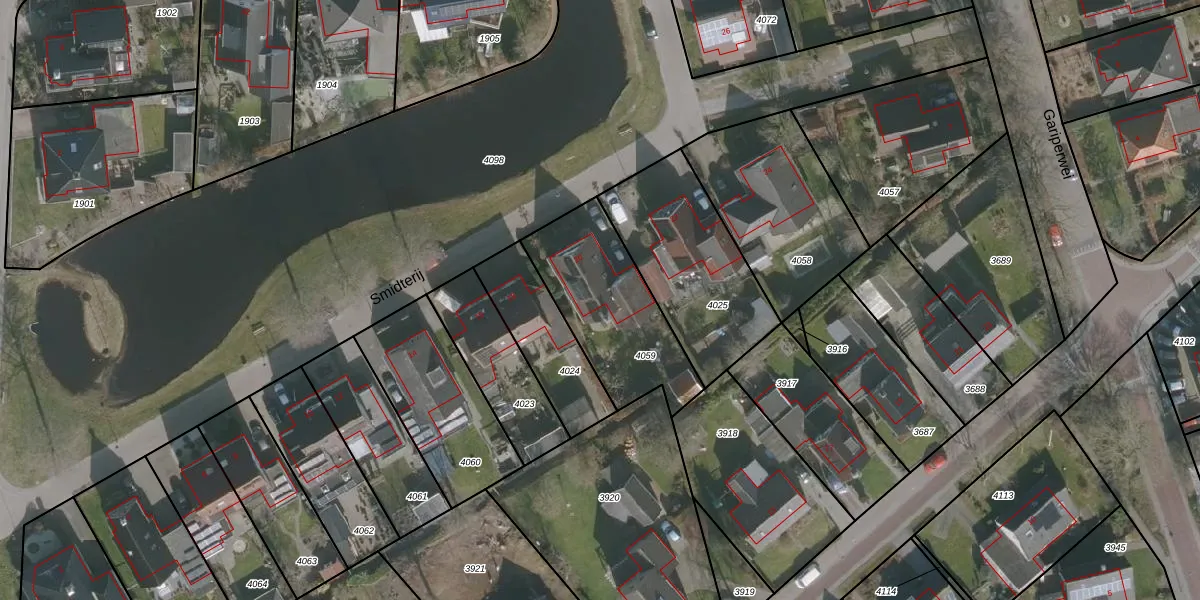 Gebruik de zoekbalk of klik op een perceel voor informatie over de adressen binnen dit perceel.