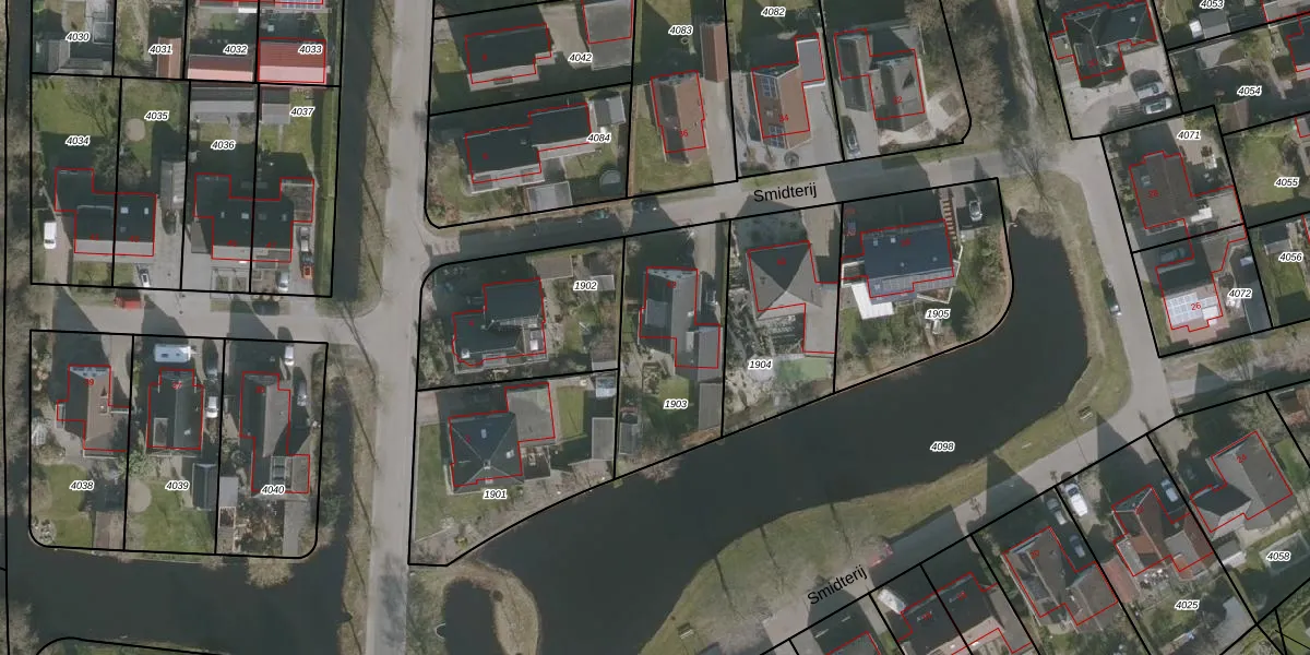 Smidterij 42 is gelegen op kadastraal perceel ODG00E1903. Deze kadastrale aanduiding is uniek en wordt gebruikt door het Kadaster om eigendomsrechten en andere zakelijke rechten vast te leggen. Het perceel maakt onderdeel uit van de kadastrale gemeente Oudega.