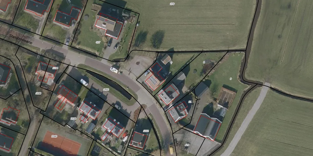 Het perceel waarop Stasjonsleane 17 staat heeft een oppervlakte van 540 m². Dit is een groot perceel. De perceeloppervlakte wordt geregistreerd door het Kadaster. Gedetailleerde informatie over de maten van dit perceel kunt u vinden in het rapport Kadastrale kaart met maatvoering van Stasjonsleane 17.