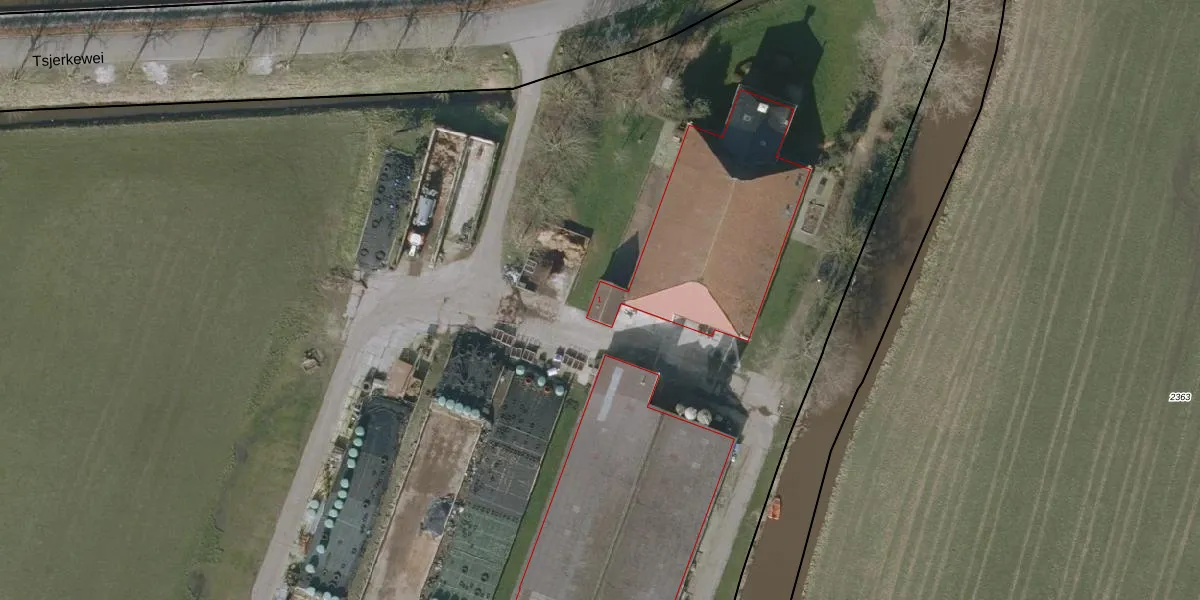 Het perceel waarop Tsjerkewei 1 staat heeft een oppervlakte van 14,9 ha. Dit is een zeer groot perceel. De perceeloppervlakte wordt geregistreerd door het Kadaster. Gedetailleerde informatie over de maten van dit perceel kunt u vinden in het rapport Kadastrale kaart met maatvoering van Tsjerkewei 1.