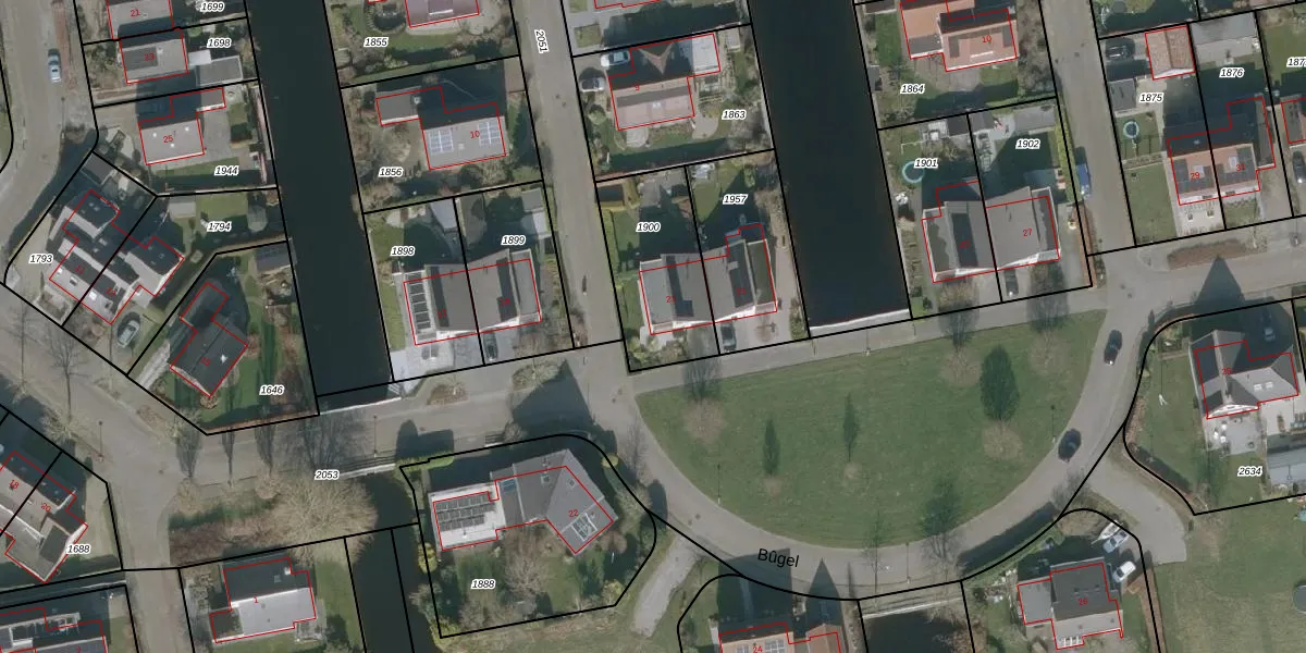 Het perceel waarop Bûgel 21 staat heeft een oppervlakte van 413 m². Dit is een groot perceel. De perceeloppervlakte wordt geregistreerd door het Kadaster. Gedetailleerde informatie over de maten van dit perceel kunt u vinden in het rapport Kadastrale kaart met maatvoering van Bûgel 21.