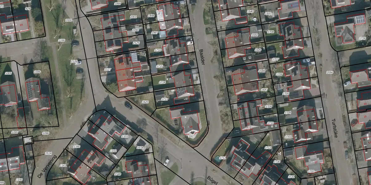 Het perceel waarop Baalder 16 staat heeft een oppervlakte van 237 m². Dit is een middelgroot perceel. De perceeloppervlakte wordt geregistreerd door het Kadaster. Gedetailleerde informatie over de maten van dit perceel kunt u vinden in het rapport Kadastrale kaart met maatvoering van Baalder 16.