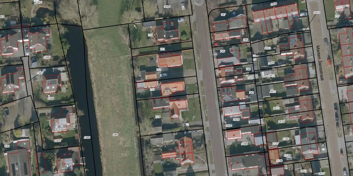 Gebruik de zoekbalk of klik op een perceel voor informatie over de adressen binnen dit perceel.