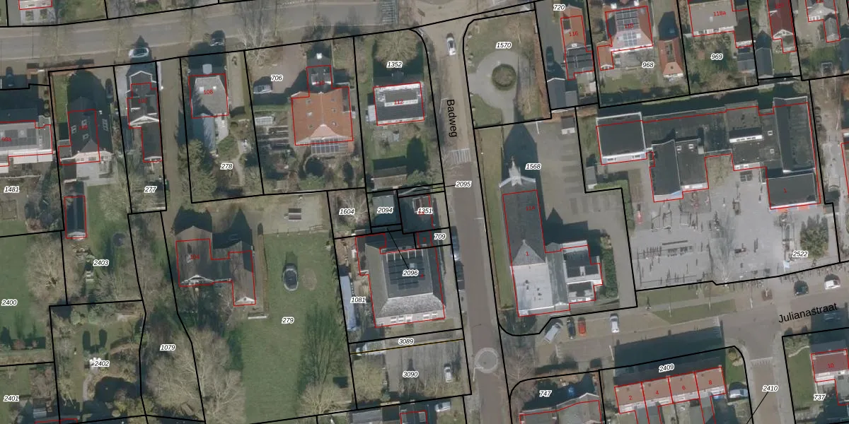 Het perceel waarop Badweg 2-a staat heeft een oppervlakte van 95 m². Dit is een klein perceel. De perceeloppervlakte wordt geregistreerd door het Kadaster. Gedetailleerde informatie over de maten van dit perceel kunt u vinden in het rapport Kadastrale kaart met maatvoering van Badweg 2-a.