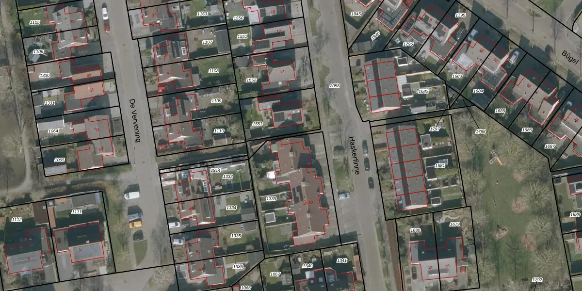 Het perceel waarop Haskerfinne 20 staat heeft een oppervlakte van 1041 m². Dit is een zeer groot perceel. De perceeloppervlakte wordt geregistreerd door het Kadaster. Gedetailleerde informatie over de maten van dit perceel kunt u vinden in het rapport Kadastrale kaart met maatvoering van Haskerfinne 20.
