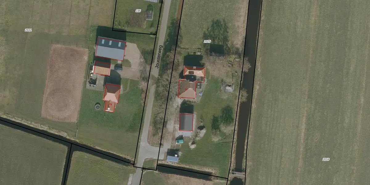 Jousterweg 32 is gelegen op kadastraal perceel NEK00L2025. Deze kadastrale aanduiding is uniek en wordt gebruikt door het Kadaster om eigendomsrechten en andere zakelijke rechten vast te leggen. Het perceel maakt onderdeel uit van de kadastrale gemeente Nijehaske.