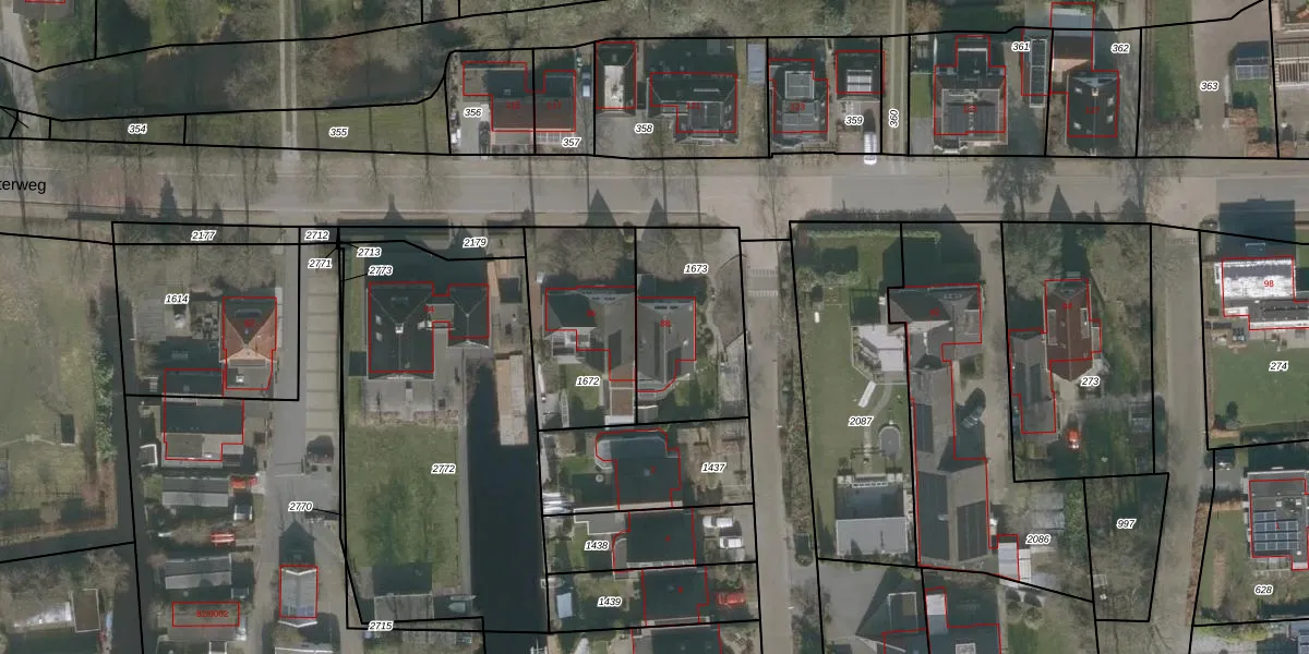Gebruik de zoekbalk of klik op een perceel voor informatie over de adressen binnen dit perceel.