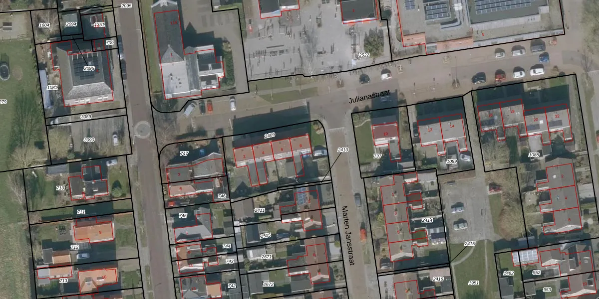 Het perceel waarop Julianastraat 8 staat heeft een oppervlakte van 710 m². Dit is een groot perceel. De perceeloppervlakte wordt geregistreerd door het Kadaster. Gedetailleerde informatie over de maten van dit perceel kunt u vinden in het rapport Kadastrale kaart met maatvoering van Julianastraat 8.