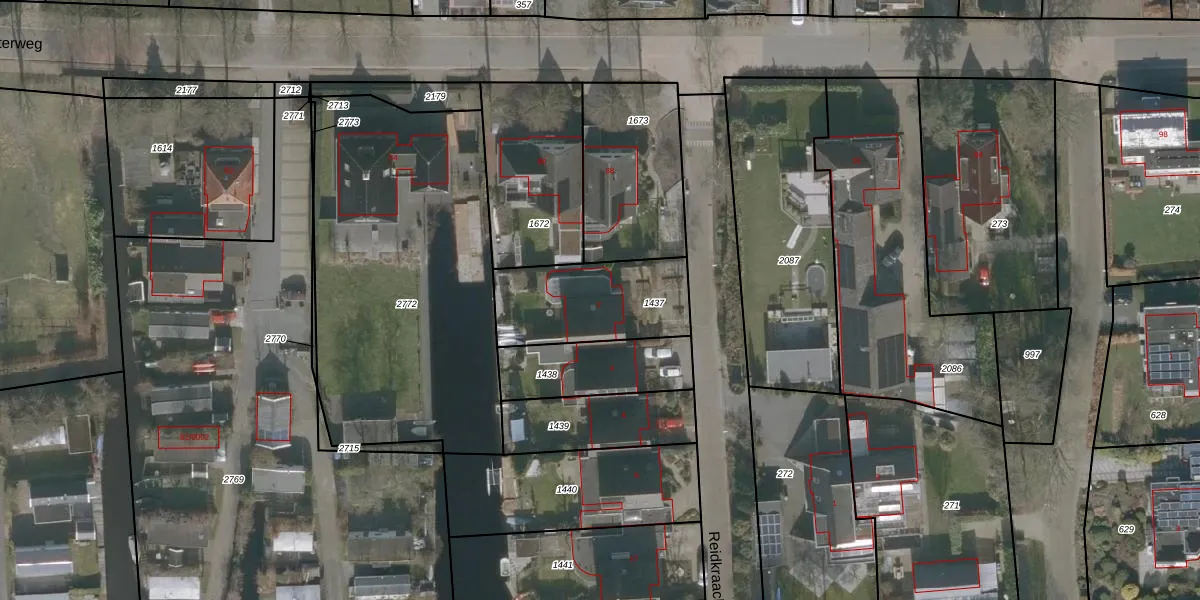 Het perceel waarop Reidkraach 2 staat heeft een oppervlakte van 418 m². Dit is een groot perceel. De perceeloppervlakte wordt geregistreerd door het Kadaster. Gedetailleerde informatie over de maten van dit perceel kunt u vinden in het rapport Kadastrale kaart met maatvoering van Reidkraach 2.
