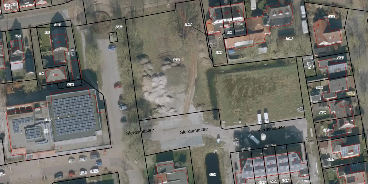Het perceel waarop Sierdsmastee 13 staat heeft een oppervlakte van 4078 m². Dit is een zeer groot perceel. De perceeloppervlakte wordt geregistreerd door het Kadaster. Gedetailleerde informatie over de maten van dit perceel kunt u vinden in het rapport Kadastrale kaart met maatvoering van Sierdsmastee 13.