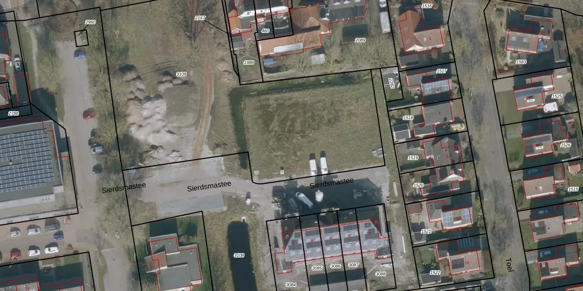 Het perceel waarop Sierdsmastee 19 staat heeft een oppervlakte van 4078 m². Dit is een zeer groot perceel. De perceeloppervlakte wordt geregistreerd door het Kadaster. Gedetailleerde informatie over de maten van dit perceel kunt u vinden in het rapport Kadastrale kaart met maatvoering van Sierdsmastee 19.