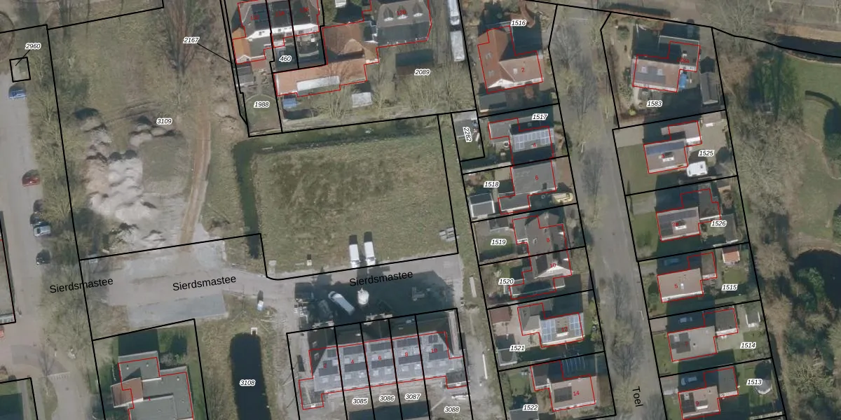 Het perceel waarop Sierdsmastee 23 staat heeft een oppervlakte van 4078 m². Dit is een zeer groot perceel. De perceeloppervlakte wordt geregistreerd door het Kadaster. Gedetailleerde informatie over de maten van dit perceel kunt u vinden in het rapport Kadastrale kaart met maatvoering van Sierdsmastee 23.