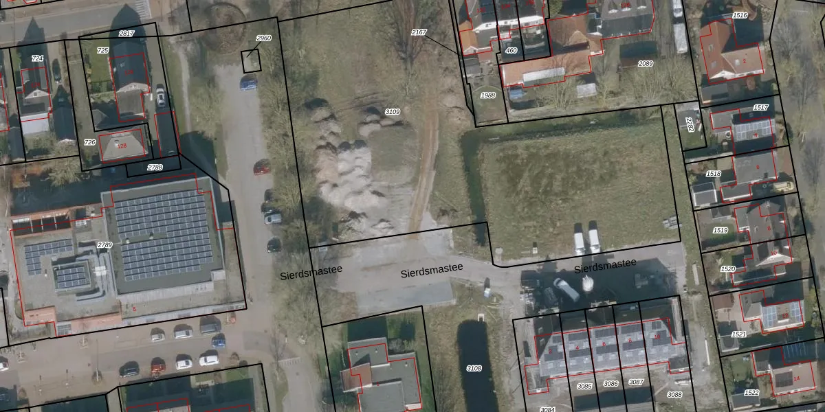 Het perceel waarop Sierdsmastee 5 staat heeft een oppervlakte van 4078 m². Dit is een zeer groot perceel. De perceeloppervlakte wordt geregistreerd door het Kadaster. Gedetailleerde informatie over de maten van dit perceel kunt u vinden in het rapport Kadastrale kaart met maatvoering van Sierdsmastee 5.