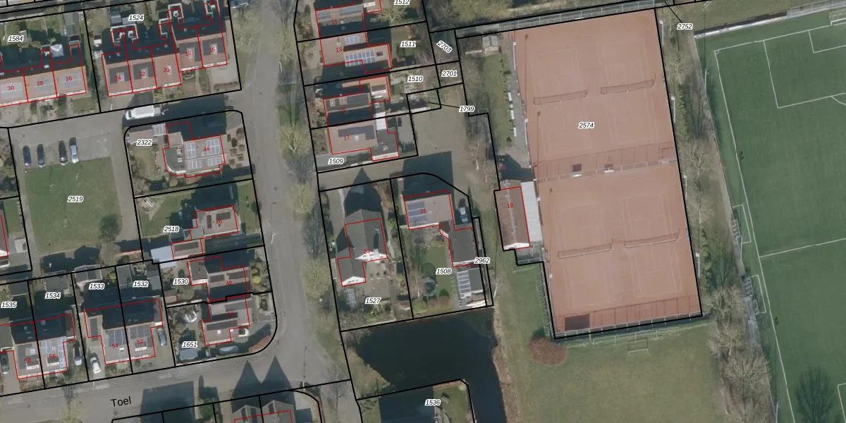 Het perceel waarop Toel 21 staat heeft een oppervlakte van 571 m². Dit is een groot perceel. De perceeloppervlakte wordt geregistreerd door het Kadaster. Gedetailleerde informatie over de maten van dit perceel kunt u vinden in het rapport Kadastrale kaart met maatvoering van Toel 21.