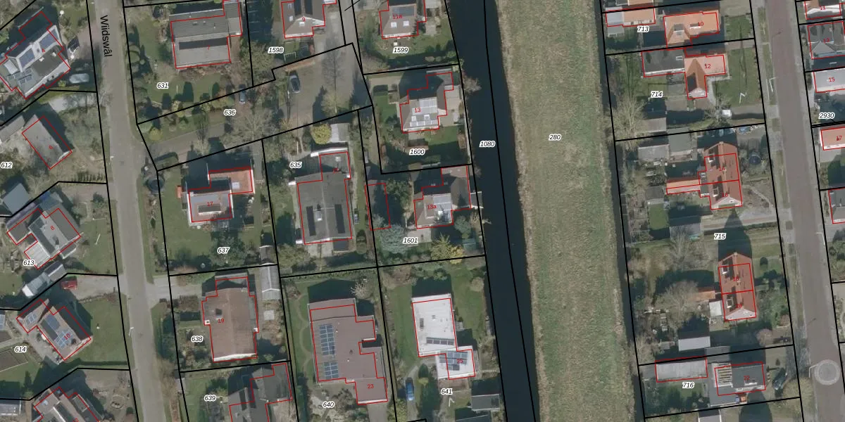 Het perceel waarop Wiidswâl 13-a staat heeft een oppervlakte van 620 m². Dit is een groot perceel. De perceeloppervlakte wordt geregistreerd door het Kadaster. Gedetailleerde informatie over de maten van dit perceel kunt u vinden in het rapport Kadastrale kaart met maatvoering van Wiidswâl 13-a.