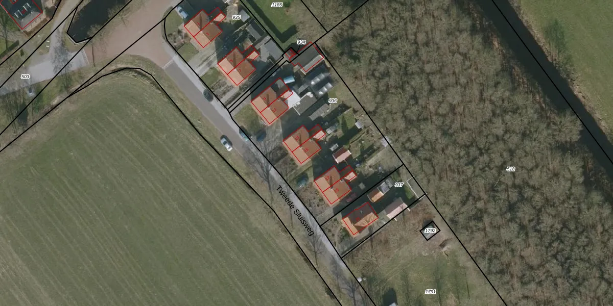 Tweede Sluisweg 15 is gelegen op kadastraal perceel MDM02J936. Deze kadastrale aanduiding is uniek en wordt gebruikt door het Kadaster om eigendomsrechten en andere zakelijke rechten vast te leggen. Het perceel maakt onderdeel uit van de kadastrale gemeente Mildam.