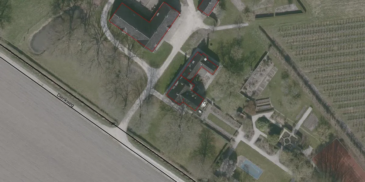 Het perceel waarop Dierikweg 3 staat heeft een oppervlakte van 8,8 ha. Dit is een zeer groot perceel. De perceeloppervlakte wordt geregistreerd door het Kadaster. Gedetailleerde informatie over de maten van dit perceel kunt u vinden in het rapport Kadastrale kaart met maatvoering van Dierikweg 3.