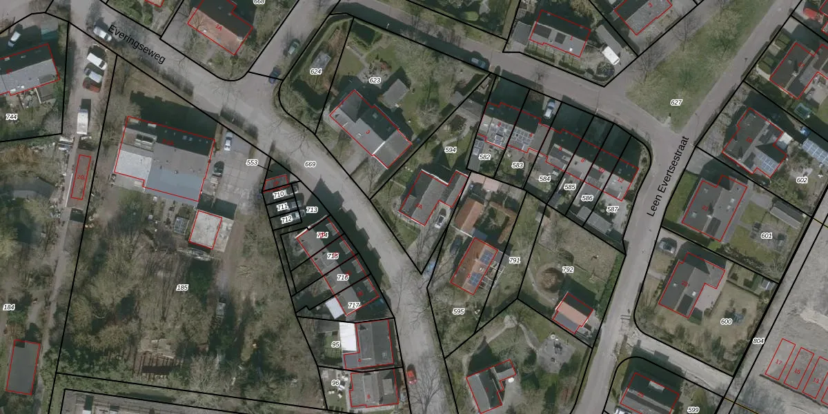 Het perceel waarop Everingseweg 3-A staat heeft een oppervlakte van 547 m². Dit is een groot perceel. De perceeloppervlakte wordt geregistreerd door het Kadaster. Gedetailleerde informatie over de maten van dit perceel kunt u vinden in het rapport Kadastrale kaart met maatvoering van Everingseweg 3-A.