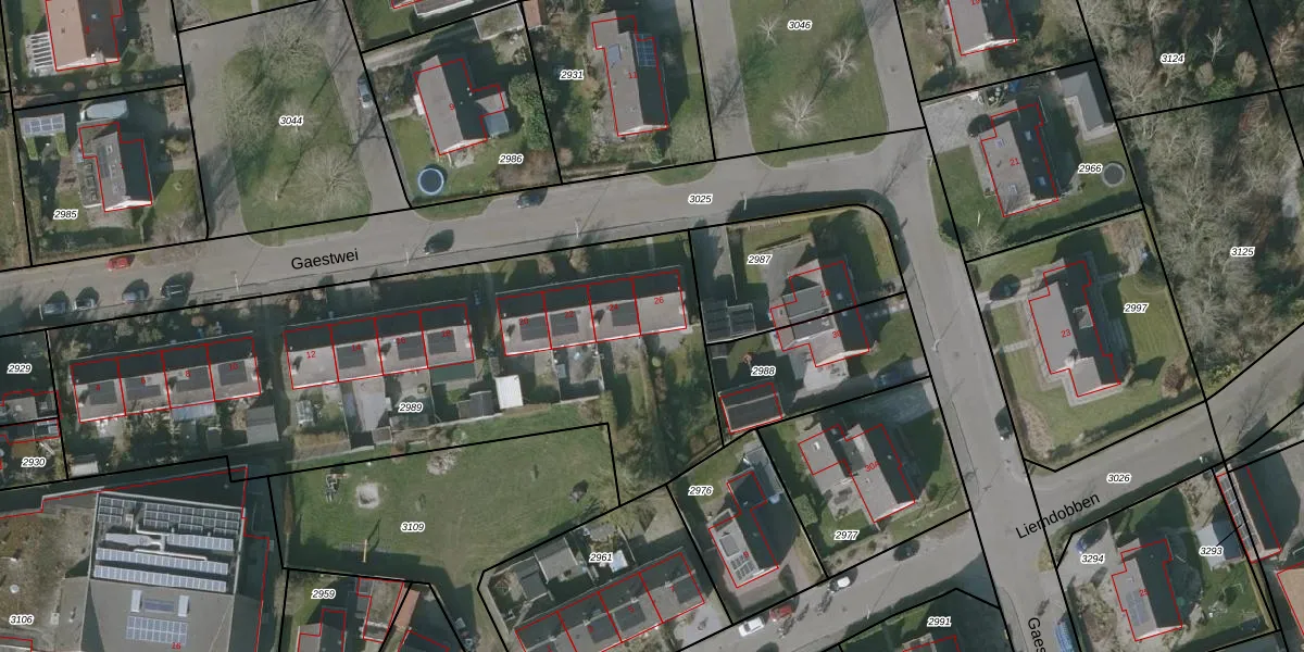 Het perceel waarop Gaestwei 26 staat heeft een oppervlakte van 2820 m². Dit is een zeer groot perceel. De perceeloppervlakte wordt geregistreerd door het Kadaster. Gedetailleerde informatie over de maten van dit perceel kunt u vinden in het rapport Kadastrale kaart met maatvoering van Gaestwei 26.