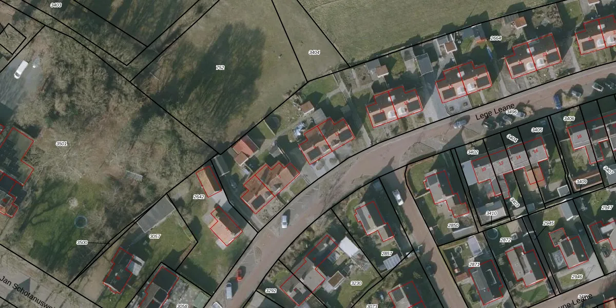 Lege Leane 9 is gelegen op kadastraal perceel BAL00E2664. Deze kadastrale aanduiding is uniek en wordt gebruikt door het Kadaster om eigendomsrechten en andere zakelijke rechten vast te leggen. Het perceel maakt onderdeel uit van de kadastrale gemeente Balk.