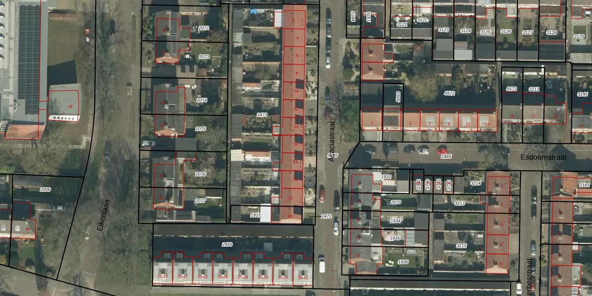 Het perceel waarop Acaciastraat 16 staat heeft een oppervlakte van 2086 m². Dit is een zeer groot perceel. De perceeloppervlakte wordt geregistreerd door het Kadaster. Gedetailleerde informatie over de maten van dit perceel kunt u vinden in het rapport Kadastrale kaart met maatvoering van Acaciastraat 16.