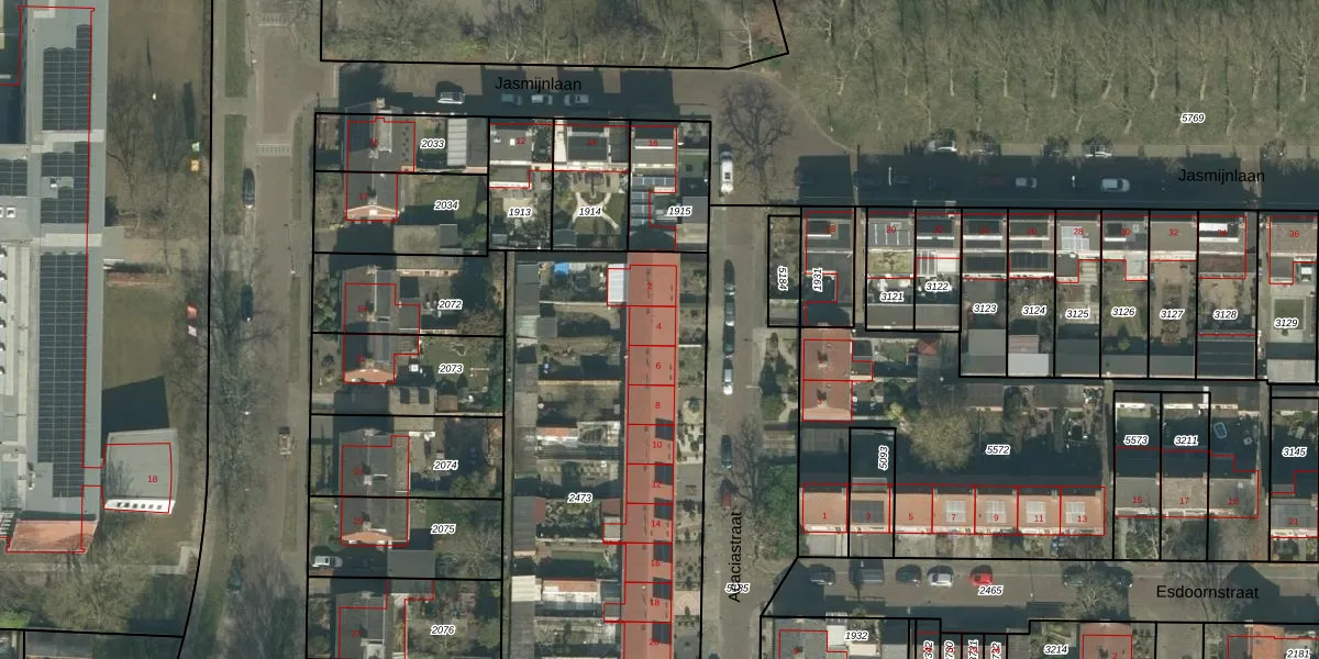 Het perceel waarop Acaciastraat 4 staat heeft een oppervlakte van 2086 m². Dit is een zeer groot perceel. De perceeloppervlakte wordt geregistreerd door het Kadaster. Gedetailleerde informatie over de maten van dit perceel kunt u vinden in het rapport Kadastrale kaart met maatvoering van Acaciastraat 4.