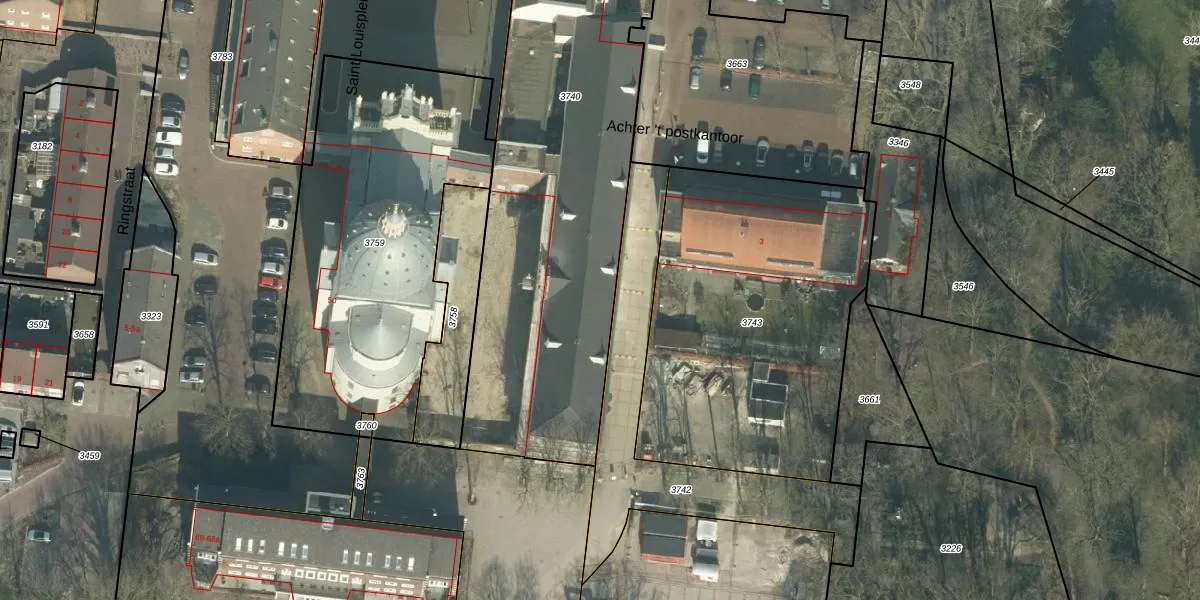 Het perceel waarop het adres ligt is ODB02-D-3740. De afkorting 'ODB02' staat voor kadastrale gemeente Oudenbosch. De gemiddelde perceeloppervlakte in de kadastrale gemeente Oudenbosch is 1819,58 m². Dit perceel is met zijn 2693 m² dus groter dan gemiddeld. Het grootste perceel in de kadastrale gemeente is 17,9 ha. Het kleinste perceel heeft een oppervlakte van 0 m². Op het perceel liggen in totaal 41 adressen. De huidige grenzen van het perceel zijn digitaal in de Basisregistratie Kadaster (BRK) geregistreerd op 20-05-2022.