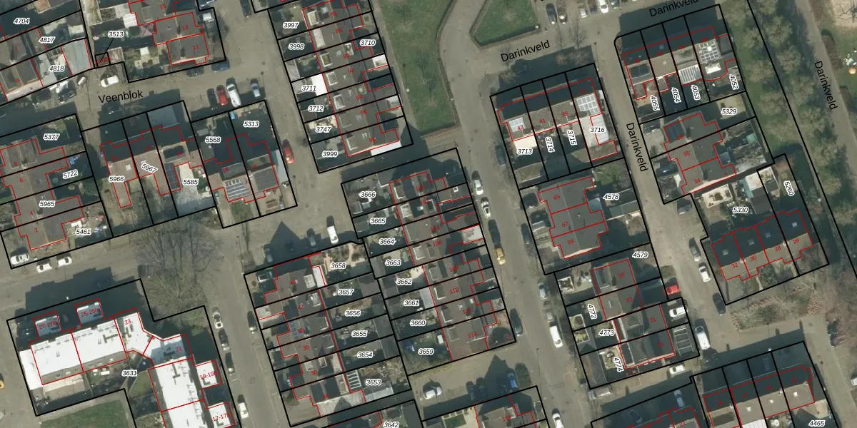 Gebruik de zoekbalk of klik op een perceel voor informatie over de adressen binnen dit perceel.