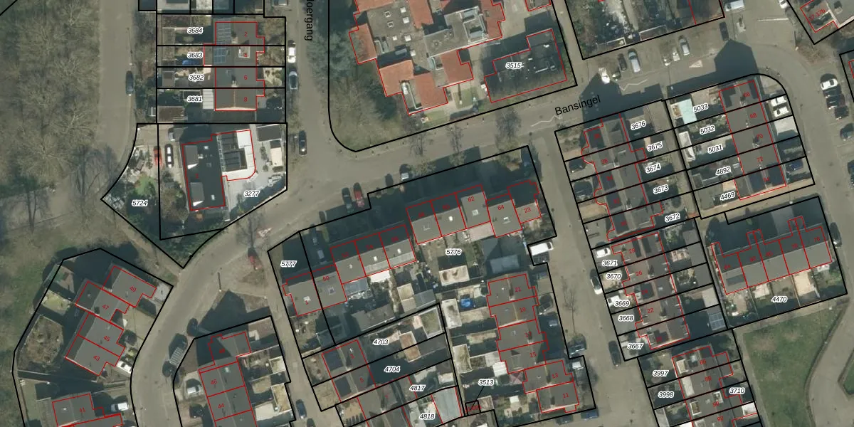 Het perceel waarop Bansingel 58 staat heeft een oppervlakte van 2483 m². Dit is een zeer groot perceel. De perceeloppervlakte wordt geregistreerd door het Kadaster. Gedetailleerde informatie over de maten van dit perceel kunt u vinden in het rapport Kadastrale kaart met maatvoering van Bansingel 58.