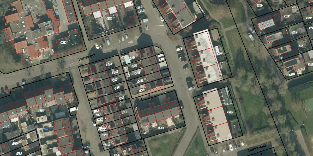 Gebruik de zoekbalk of klik op een perceel voor informatie over de adressen binnen dit perceel.