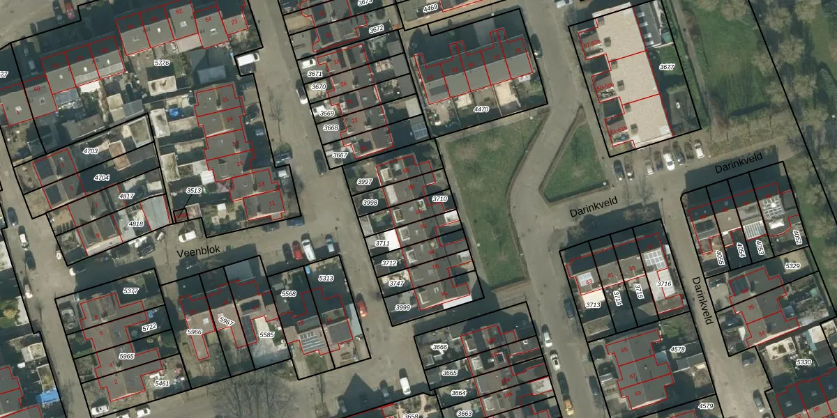 Gebruik de zoekbalk of klik op een perceel voor informatie over de adressen binnen dit perceel.