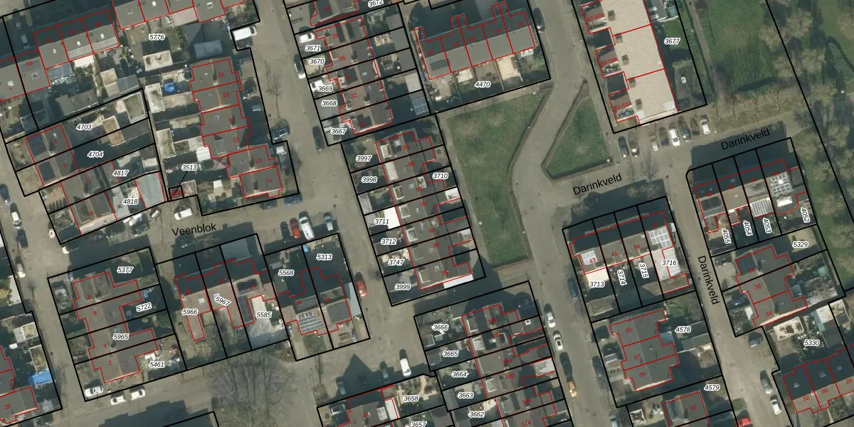 Gebruik de zoekbalk of klik op een perceel voor informatie over de adressen binnen dit perceel.
