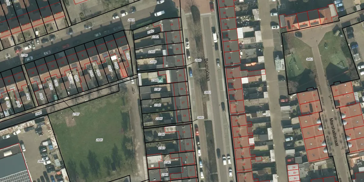 Beatrixlaan 19 is gelegen op kadastraal perceel ODB02D2347. Deze kadastrale aanduiding is uniek en wordt gebruikt door het Kadaster om eigendomsrechten en andere zakelijke rechten vast te leggen. Het perceel maakt onderdeel uit van de kadastrale gemeente Oudenbosch.