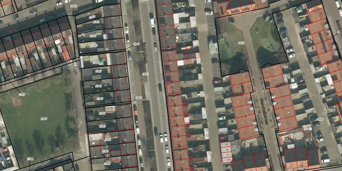 Beatrixlaan 20 is gelegen op kadastraal perceel ODB02D3450. Deze kadastrale aanduiding is uniek en wordt gebruikt door het Kadaster om eigendomsrechten en andere zakelijke rechten vast te leggen. Het perceel maakt onderdeel uit van de kadastrale gemeente Oudenbosch.