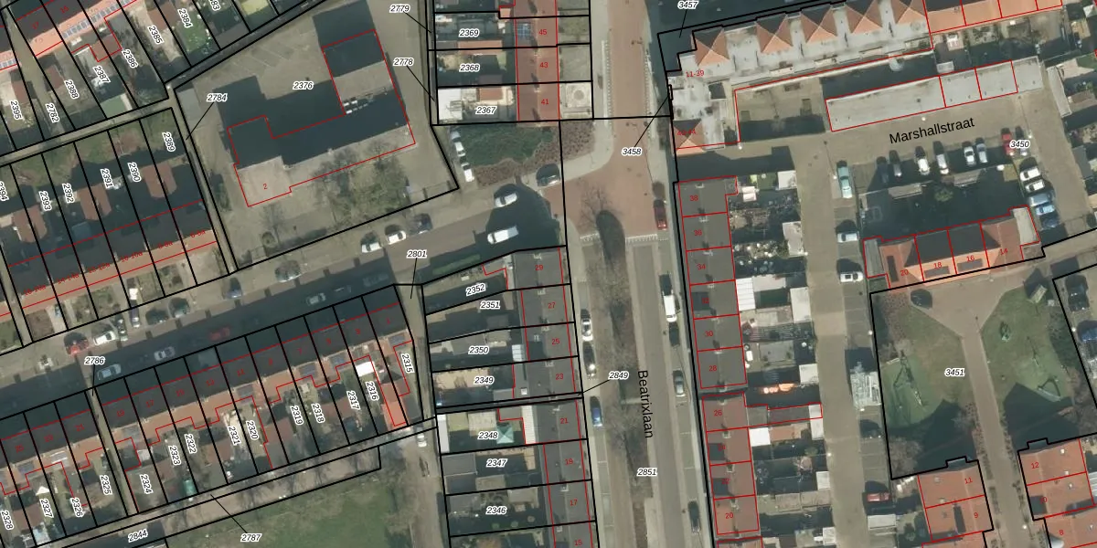 Beatrixlaan 29 is gelegen op kadastraal perceel ODB02D2352. Deze kadastrale aanduiding is uniek en wordt gebruikt door het Kadaster om eigendomsrechten en andere zakelijke rechten vast te leggen. Het perceel maakt onderdeel uit van de kadastrale gemeente Oudenbosch.