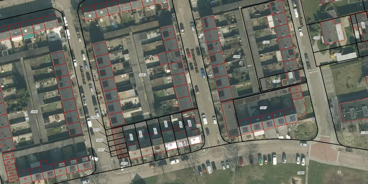 Het perceel waarop Boeierstraat 3 staat heeft een oppervlakte van 3688 m². Dit is een zeer groot perceel. De perceeloppervlakte wordt geregistreerd door het Kadaster. Gedetailleerde informatie over de maten van dit perceel kunt u vinden in het rapport Kadastrale kaart met maatvoering van Boeierstraat 3.