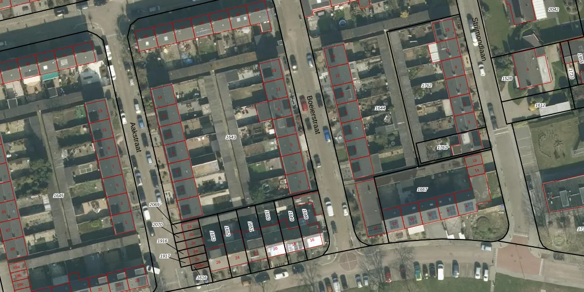 Boeierstraat 5 is gelegen op kadastraal perceel ODB02A1643. Deze kadastrale aanduiding is uniek en wordt gebruikt door het Kadaster om eigendomsrechten en andere zakelijke rechten vast te leggen. Het perceel maakt onderdeel uit van de kadastrale gemeente Oudenbosch.