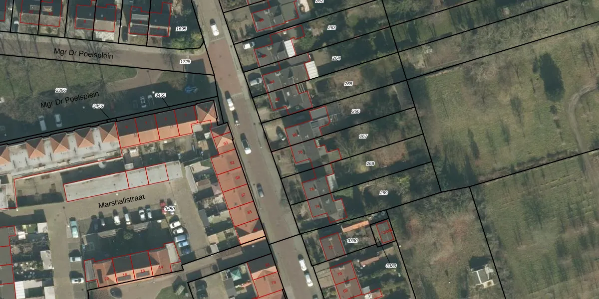 Het adres ligt op het perceel ODB02-E-267, dat zich in de kadastrale gemeente Oudenbosch bevindt. Het perceel is kleiner dan gemiddeld in Oudenbosch. Het perceel is 476 m² groot, terwijl het gemiddelde ligt op 1824,91 m². De grootste perceeloppervlakte in de kadastrale gemeente is 17,9 ha. De kleinste oppervlakte bedraagt 0 m². Er zijn geen andere adressen aanwezig op het perceel. De laatste wijziging in het de Basisregistratie Kadaster (BRK) was op 23-05-2017.