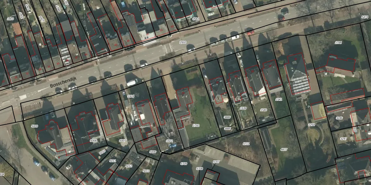Het perceel waarop Bosschendijk 26 staat heeft een oppervlakte van 870 m². Dit is een groot perceel. De perceeloppervlakte wordt geregistreerd door het Kadaster. Gedetailleerde informatie over de maten van dit perceel kunt u vinden in het rapport Kadastrale kaart met maatvoering van Bosschendijk 26.