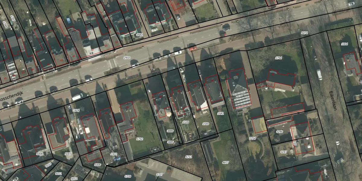 Gebruik de zoekbalk of klik op een perceel voor informatie over de adressen binnen dit perceel.