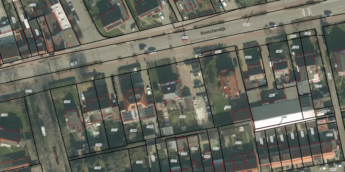 Het perceel waarop Bosschendijk 48 staat heeft een oppervlakte van 1270 m². Dit is een zeer groot perceel. De perceeloppervlakte wordt geregistreerd door het Kadaster. Gedetailleerde informatie over de maten van dit perceel kunt u vinden in het rapport Kadastrale kaart met maatvoering van Bosschendijk 48.