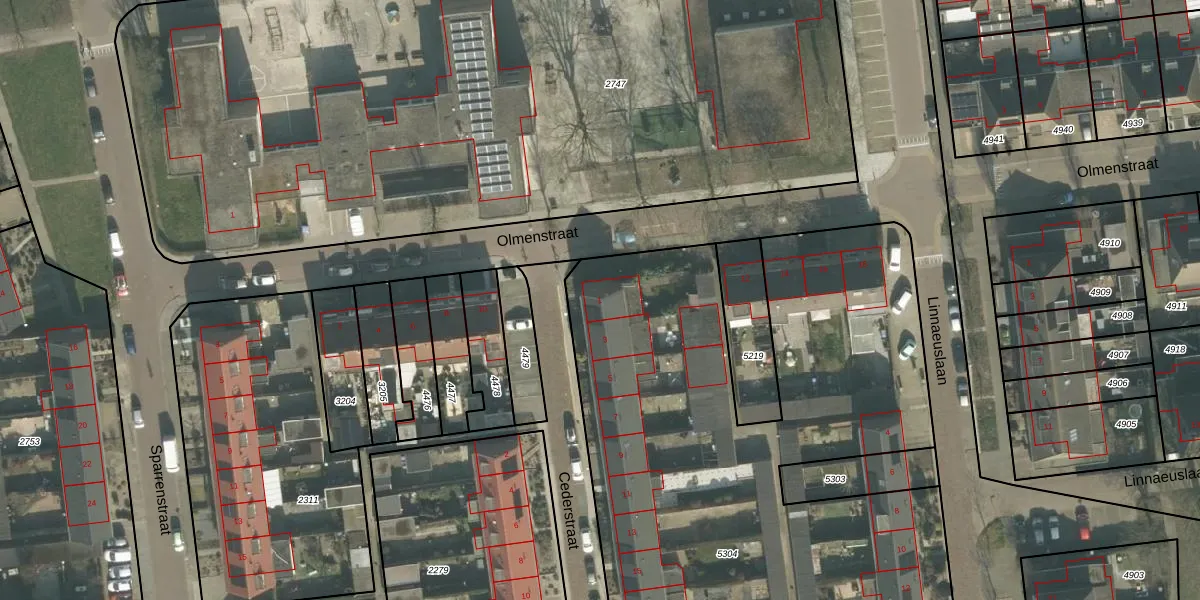 Het perceel waarop Cederstraat 1 staat heeft een oppervlakte van 4995 m². Dit is een zeer groot perceel. De perceeloppervlakte wordt geregistreerd door het Kadaster. Gedetailleerde informatie over de maten van dit perceel kunt u vinden in het rapport Kadastrale kaart met maatvoering van Cederstraat 1.